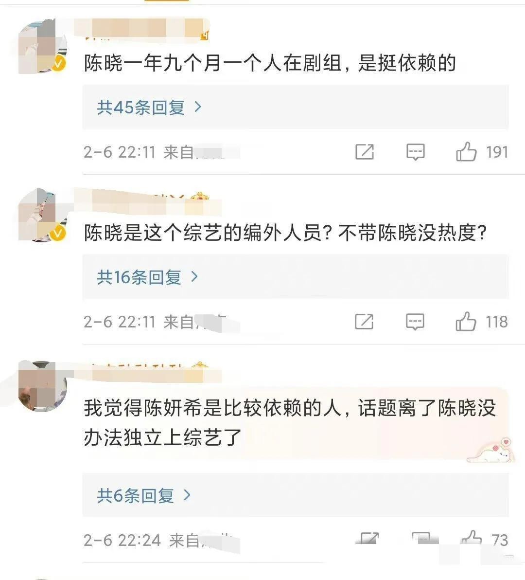 陈妍希不停的在节目里秀恩爱,说陈晓很依赖她,