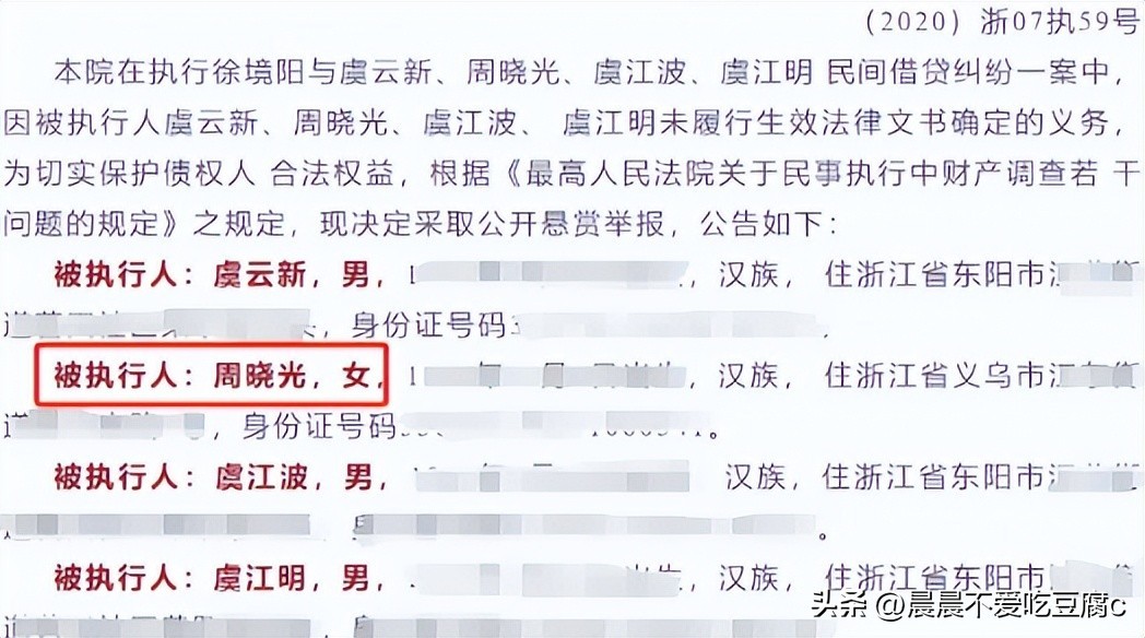 2021年,周晓光夫妇和两个儿子被浙江金华市中级人民法院发出“悬赏追债”,其名下多套房产、豪车被拍卖,但面对庞大的债务,拍卖的这个东西也是不够看的。