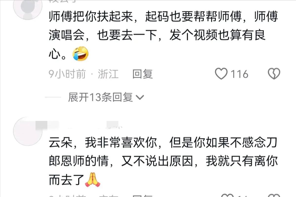 而他唯一知名的爱徒云朵却未曾发声支持师父。