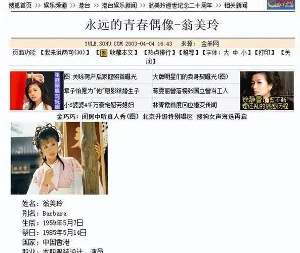 85年“俏黄蓉”翁美玲突然离世,20年后法医爆料秘闻:当时不敢说