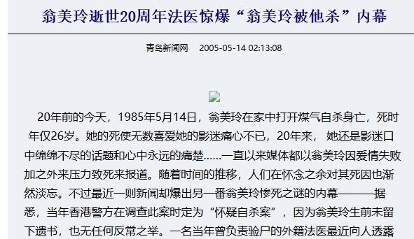 青岛新闻网————翁美玲逝世20周年法医惊爆“翁美玲被他杀”内幕