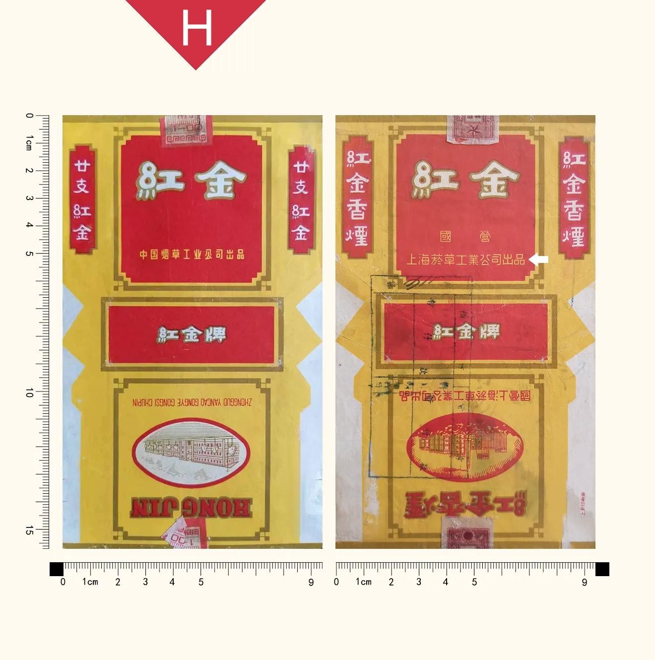 上海市丨H丨红金丨软盒|中国烟草工业公司出品丨国营上海烟草工业公司出品