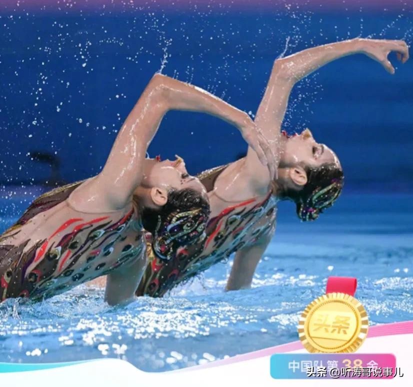 花样游泳女子双人自由自选比赛中,中国的双胞胎姐妹王柳懿与王芊懿组合以总分566.4783排名第一,获得中国队的第38枚金牌。