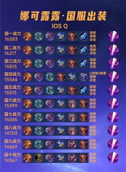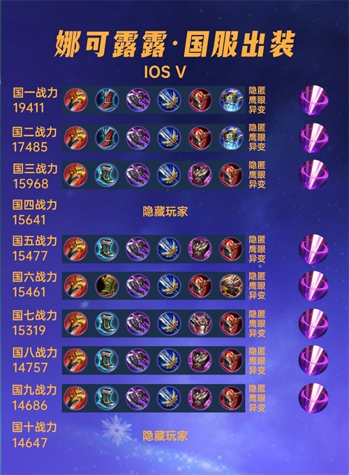 这篇文章我们来看一下40位国服娜可露露的出装铭文汇总。
