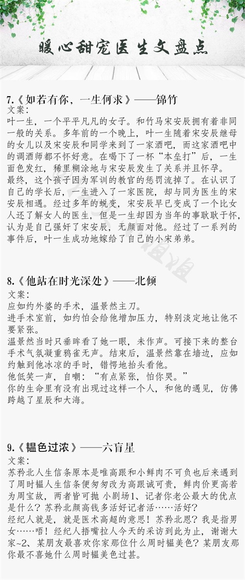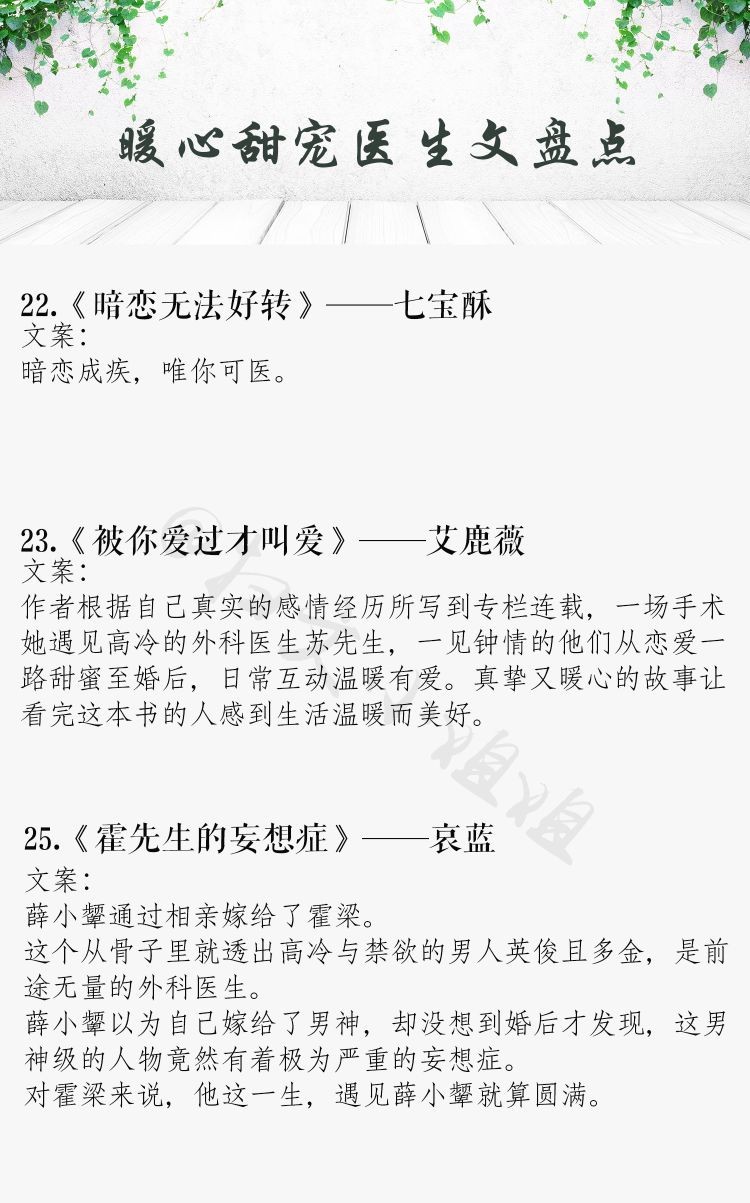 今天推荐一批高甜医生男主系列文,恪尽职守,医者仁心,禁欲又撩人。外表高冷儒雅的医生男主,真的是苏炸了!