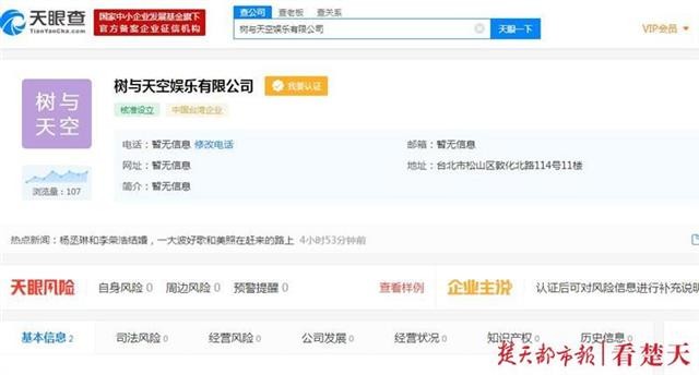 天眼查数据显示,这是一家台资公司,法人代表是林丽娟,杨丞琳并未在公司股东中出现,这家公司具体经营状况也未公开。