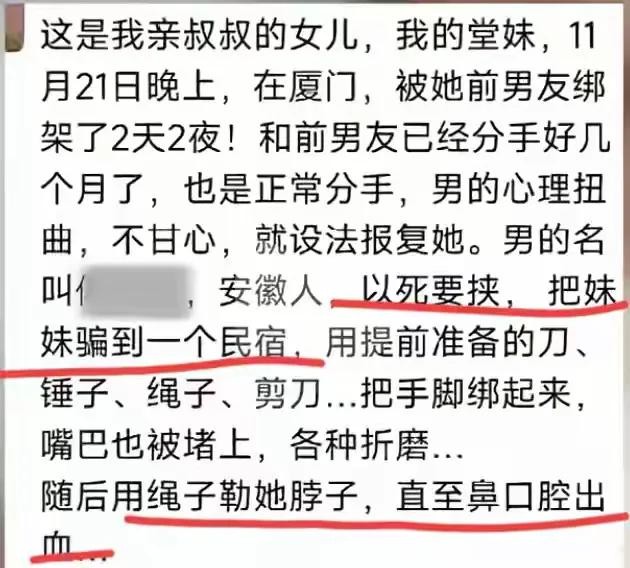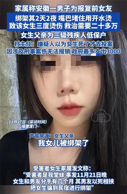 惊悚!20岁女孩被前男友绑架,两天折磨后获救,家属痛心发声