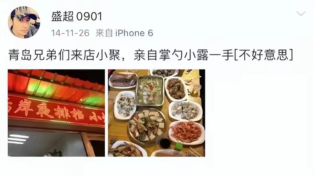2014年的时候,盛超在青岛开了一家小炒店,盛超不仅是老板还是大厨,发文为自己的小店宣传。