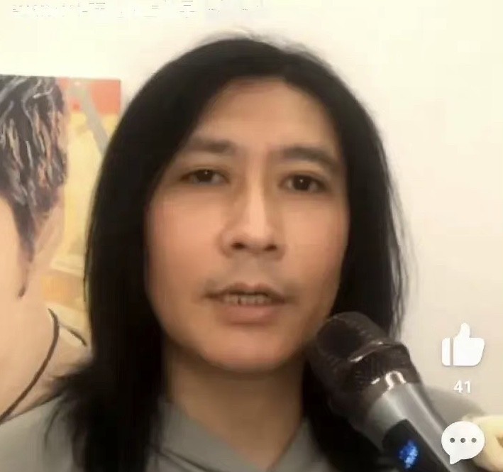照片中盛超留着一头长发,皮肤黝黑,牙齿也因为上了年纪而掉了一个,盛超身穿灰色卫衣在开直播唱歌,完全就是油腻大叔的模样。
