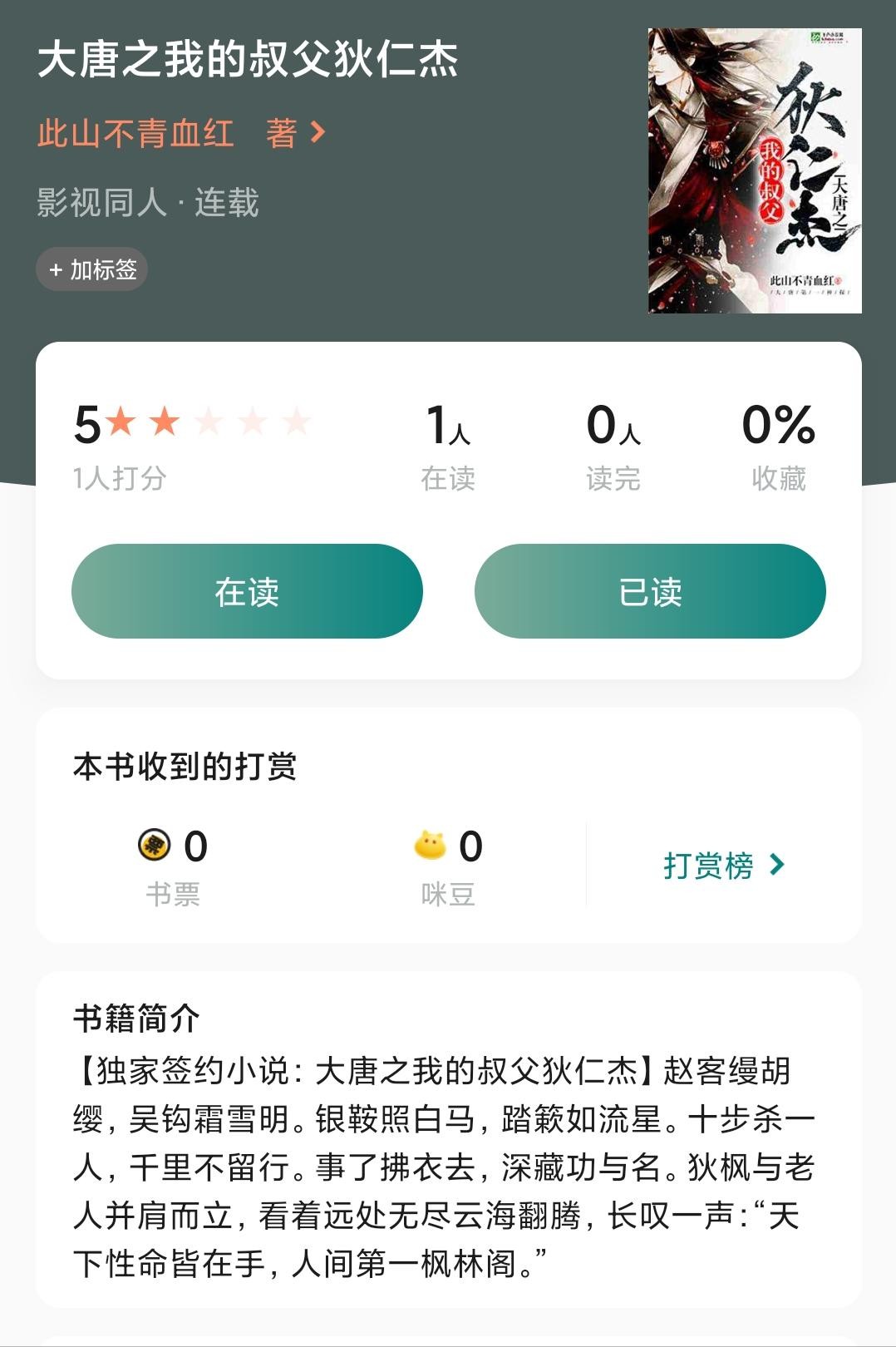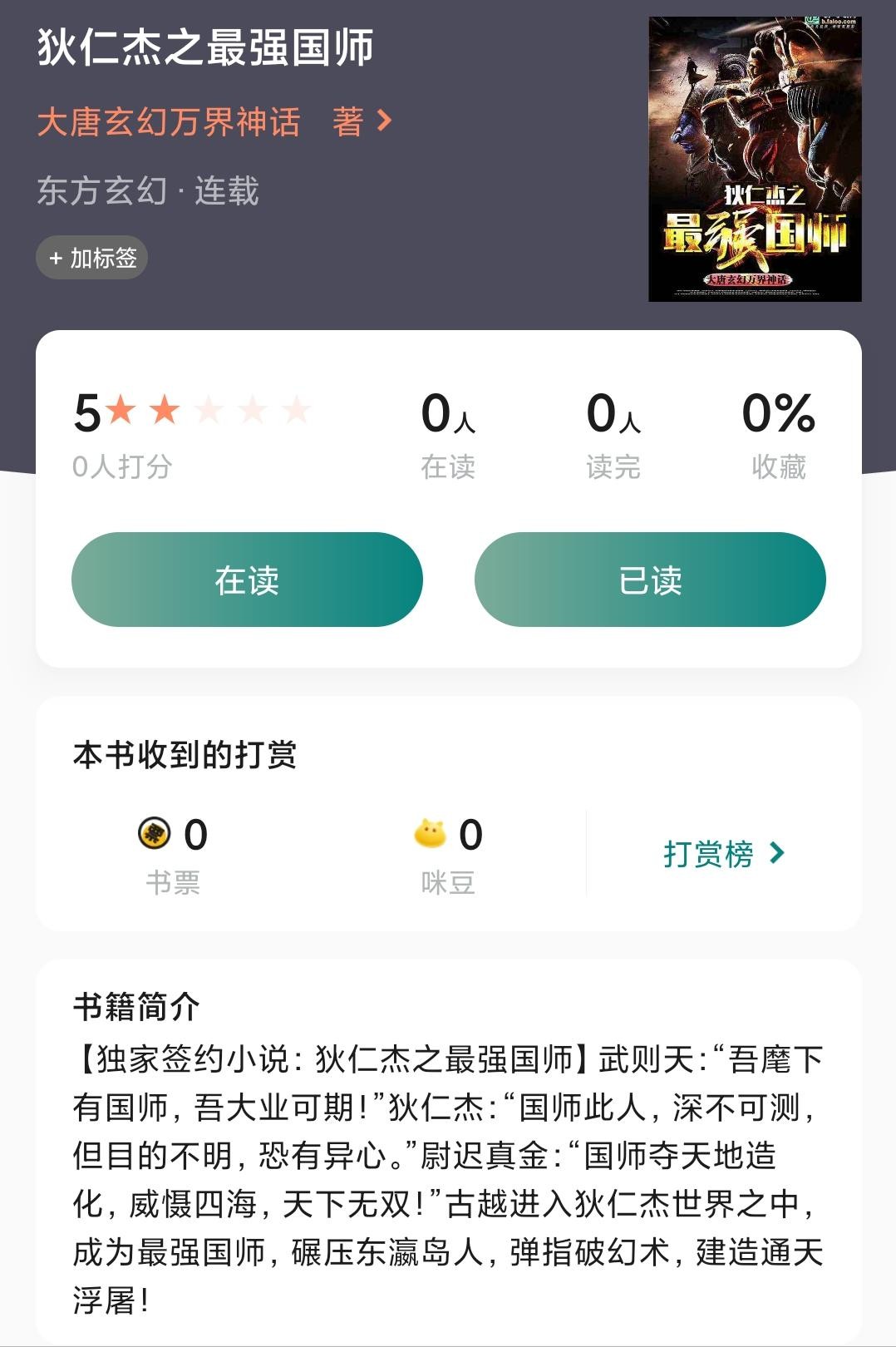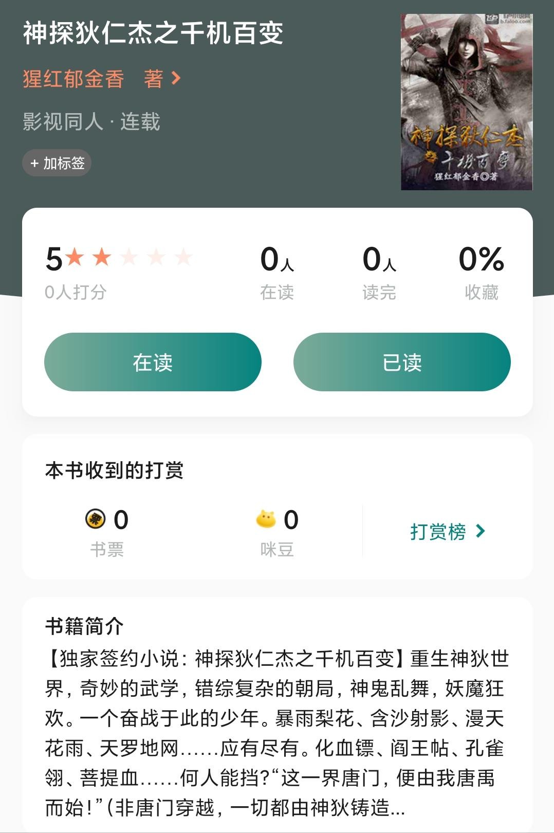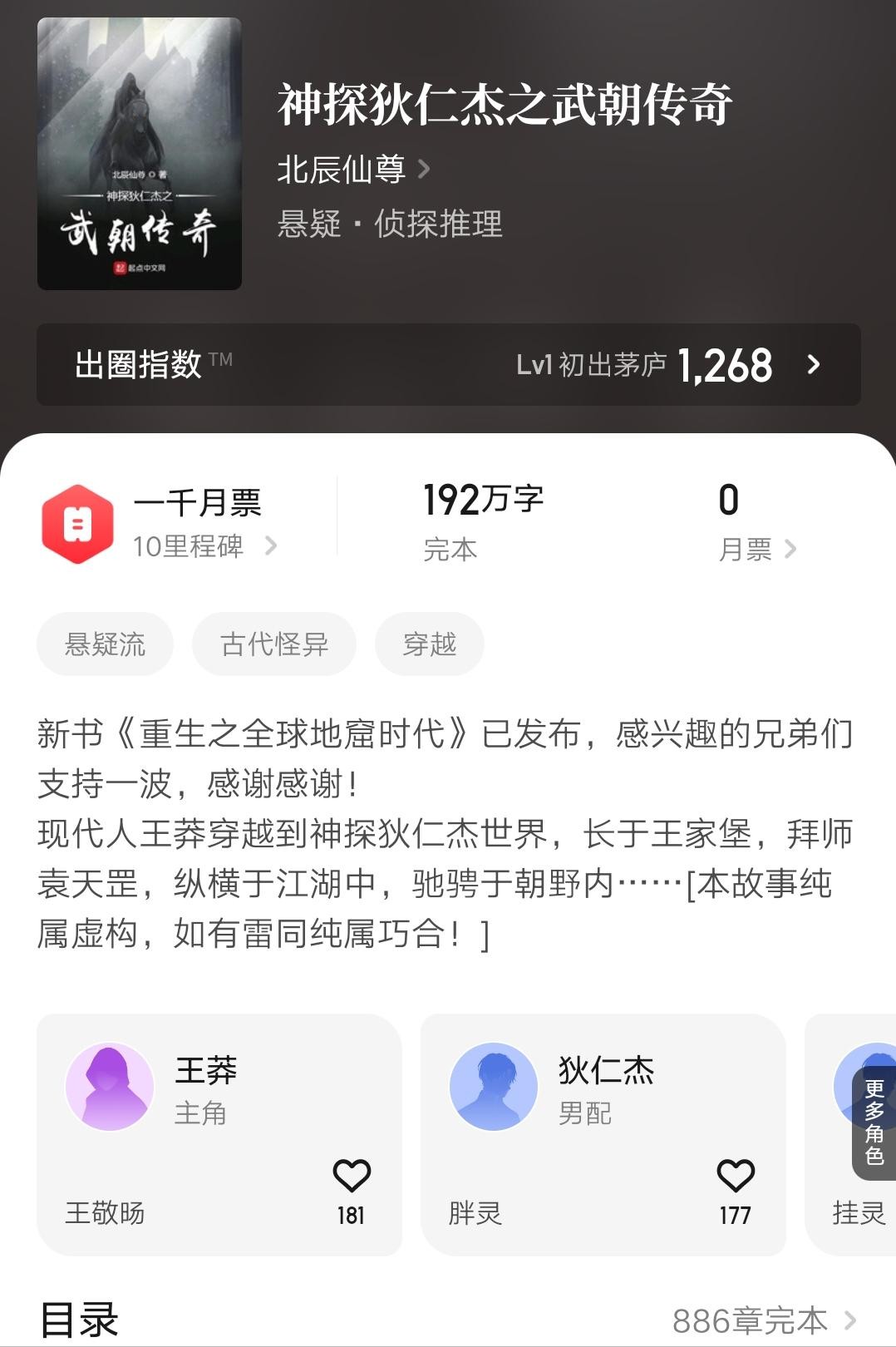 顾名思义,主角的身份是狄仁杰的侄子,文武双全。目前1400多章,连载中。
