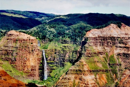 考爱岛是夏威夷第四大岛。在岛的中部有海拔1600米的怀厄莱阿莱山拔地而起,横亘绵延,山顶上经常云雾缭绕,山峰若隐若现。在多雨的气候下,岛上到处都是碧绿青翠、五彩缤纷的景观,加上无数条瀑布的点缀,这座岛犹如一个放大的山水盆景,素有“花园岛”之称。