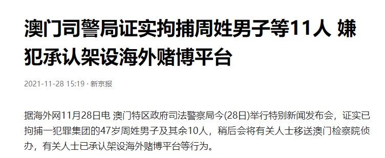 两天后,澳门司法警察局举行特别发布会,证实已拘捕一犯罪集团的47岁周姓男子及其余10人。