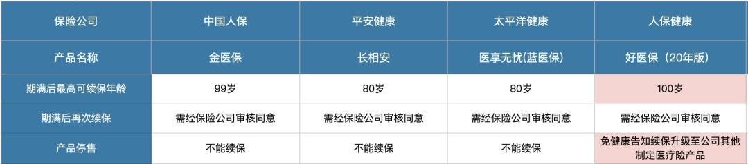 以长相安为例,如果20年保证续保期间届满后,被保人年龄已经满80岁,那就不能续保。