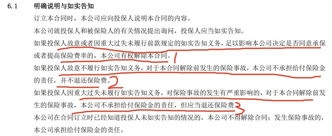 第三句话留了情面,如果是过失,比如忘记了前两年身体有异常,那么不赔,但还是把钱退给客户。