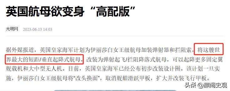 其中最典型的莫过于“英国的伊丽莎白女王级航母”,它也曾是世界上最大的短距离垂直起降式航母了。