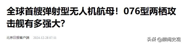 北京日报2024-12-28《全球首艘弹射型无人机航母!076型两栖攻击舰有多强大?》