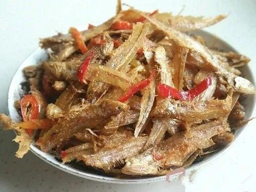 辣椒炒毛鱼,宿松县水面广泛,鱼类资源极其丰富。当地渔民把一种长条的湖鱼捕捞上来后,晒干制成“毛鱼干”,简称毛鱼。