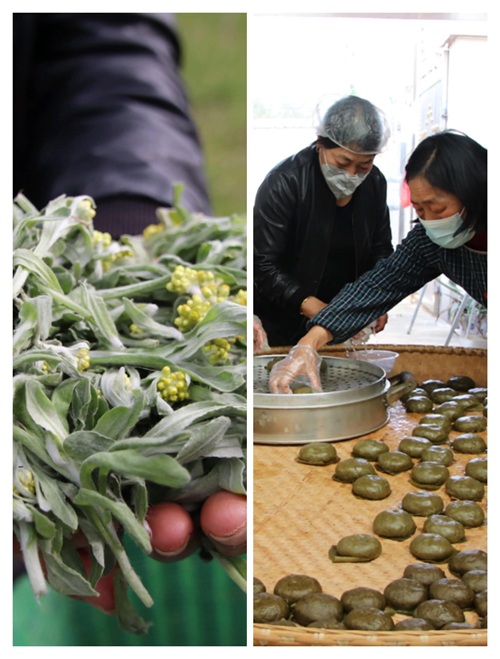水萩粑,又称“水篙粑”。居民在每年的三月三附近会在田野中采摘“水萩",学名“清明草”,也叫“鼠曲草”“清明菜”等,安庆地区普遍称“水萩”或“水秋”,此草生于密草丛中,每年的春季可采食,利用水萩为原材料制作的水萩粑是安庆地区一道独特的美食。