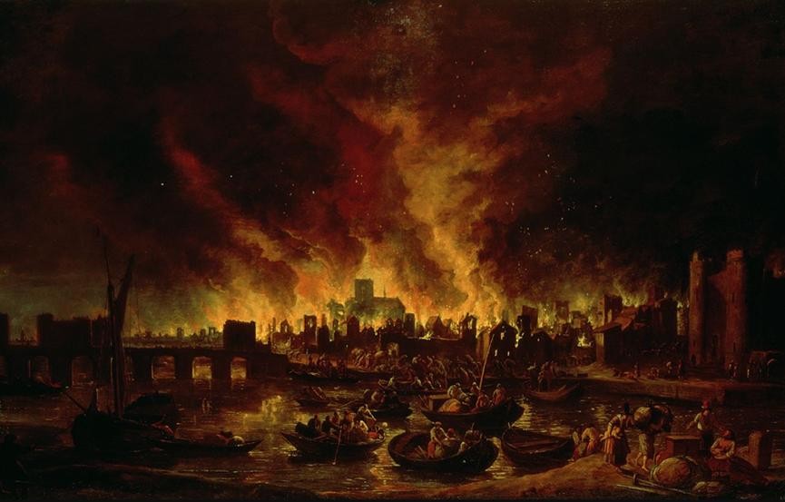 此后的研究者们都认为,这场疫情的悄然终结有着多方面的原因,其中,有一个重要的节点,那就是1666年9月2日伦敦那一场连续烧了四天的世纪大火。这是伦敦历史上最严重的一次火灾,虽然死伤人数不多,但城市的三分之一被摧毁,包括当时欧洲最大、最宏伟的建筑圣保罗大教堂。据说这场大火给伦敦造成了大约1000万英镑的经济损失,而当时伦敦市的年收入才12000英镑,所以从理论上讲,这次损失需要800年来弥补。但同时,这场大火也切断了伦敦自1665年以来流行的黑死病瘟疫。1666年大火后,伦敦开始大规模重建,黑死病逐渐销声匿迹,而肆虐欧洲的鼠疫也终于慢慢结束了。