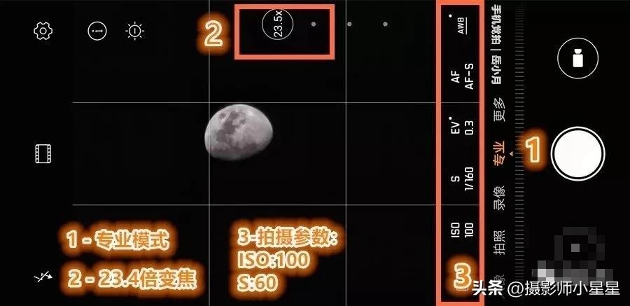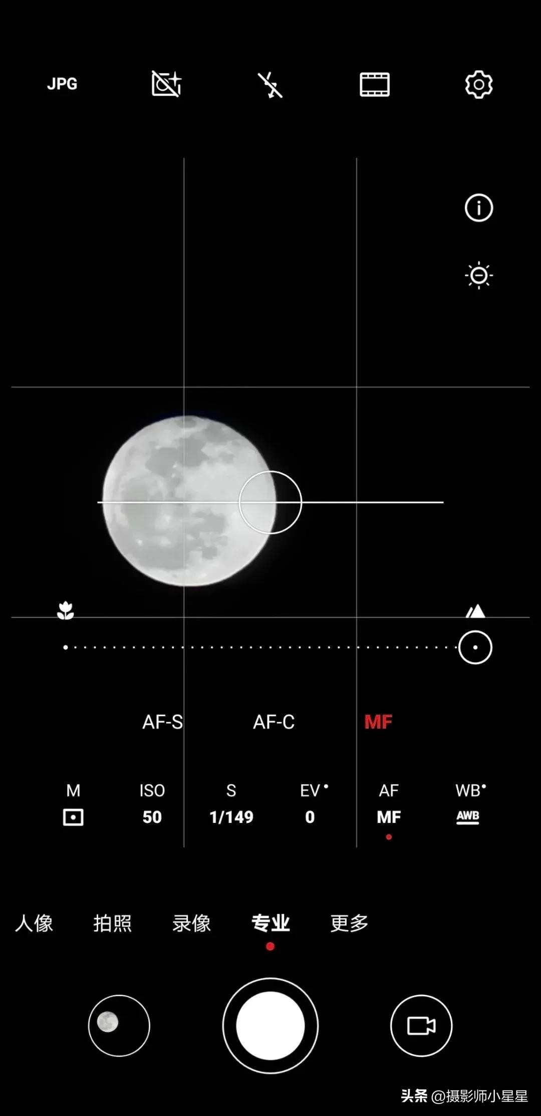 手机这样设置之后,按下快门就可以拍摄清晰的月亮照片啦。