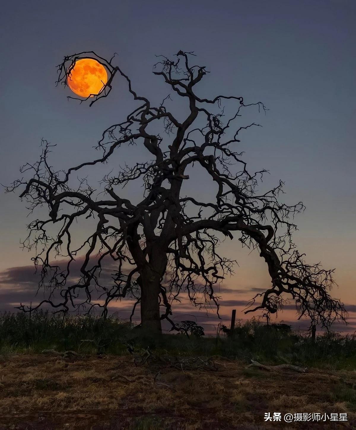 将月亮与有趣的前景物体相结合可以制造出对比,这有助于强调月亮的亮度和形状。这种对比可以使照片更加引人注目,使月亮更容易被观众注意到。