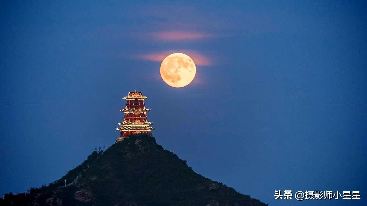 拍摄月亮最好有好看的前景,这样可以增强照片的视觉吸引力和艺术价值。