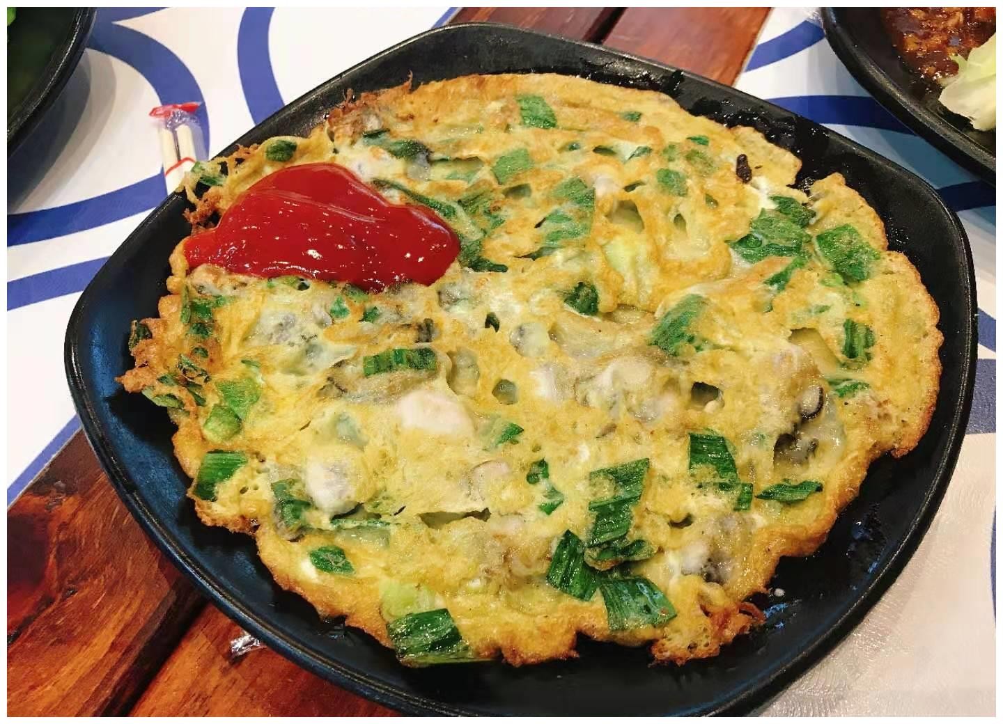 五、海蛎煎,这道厦门的传统小吃,以其独特的口感和丰富的风味,吸引了无数食客前来品尝。它选用新鲜的海蛎子作为主要食材,搭配鸡蛋、葱花等精心调配的佐料,经过巧妙的烹饪工艺,最终呈现出金黄色的诱人外观。