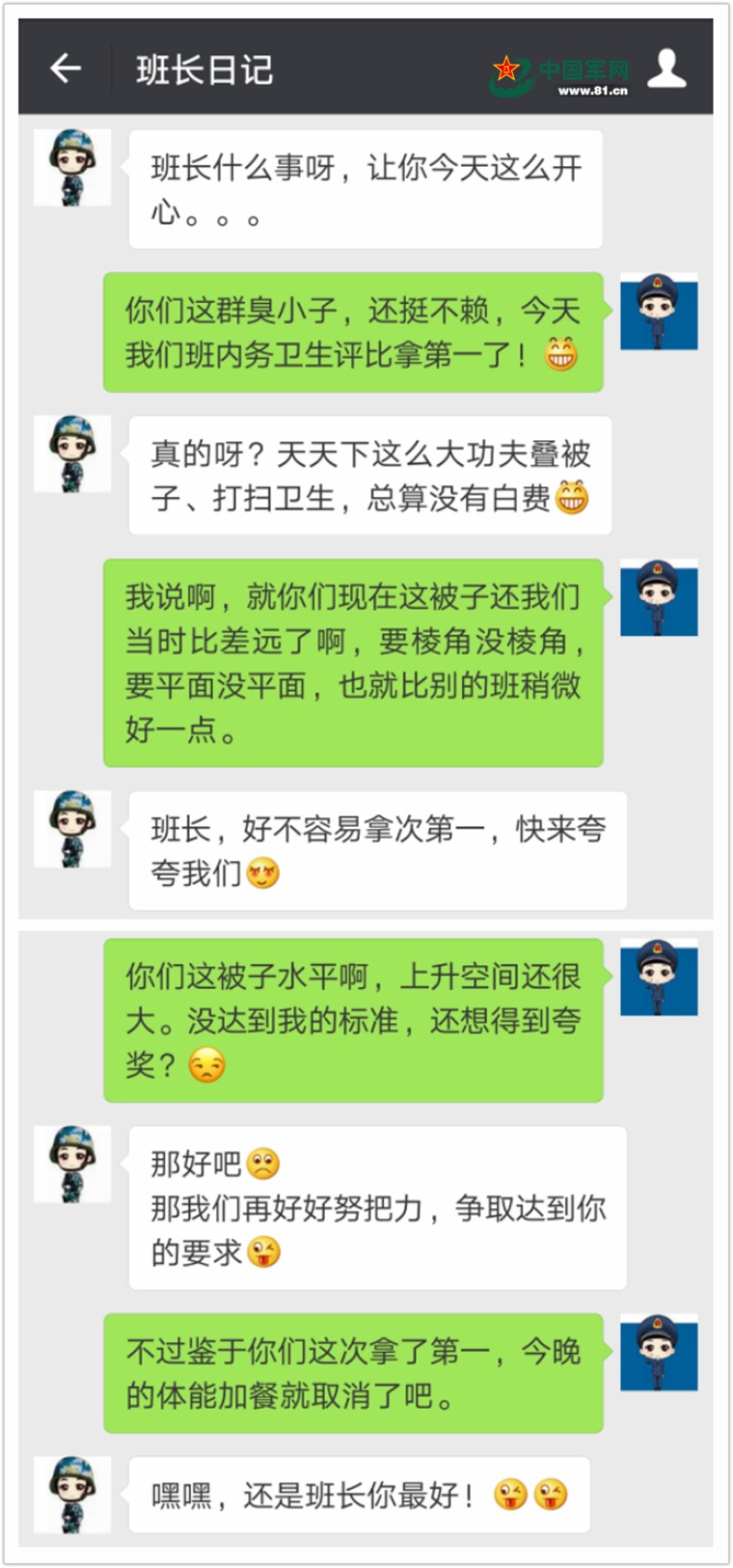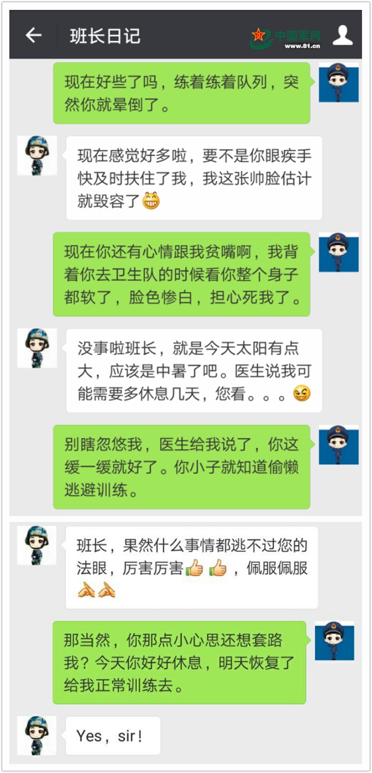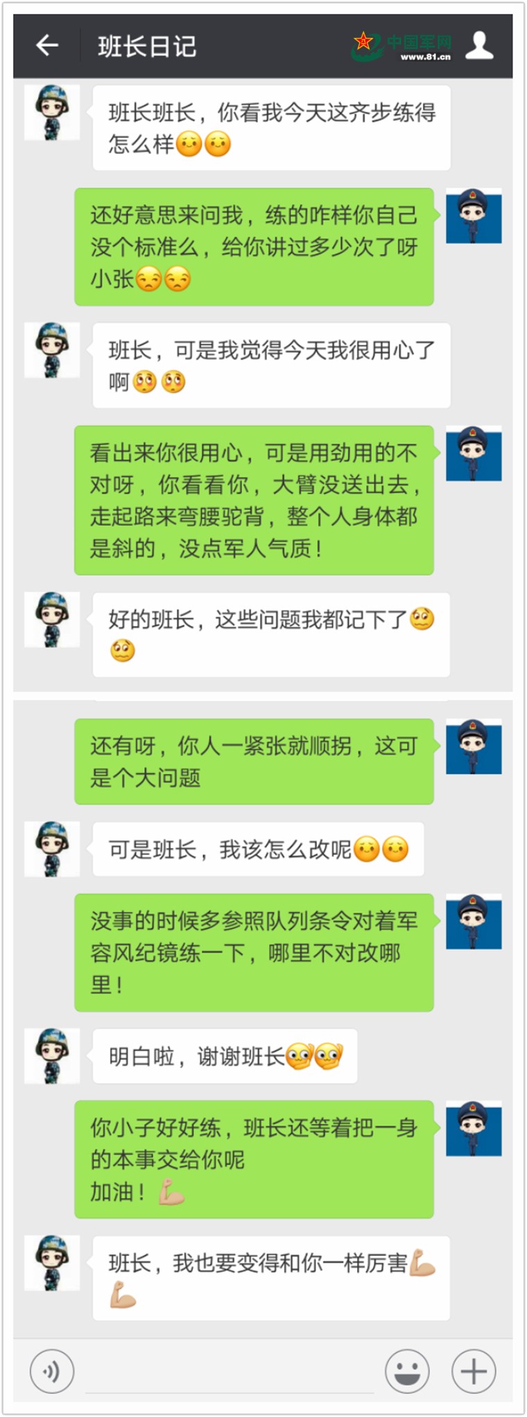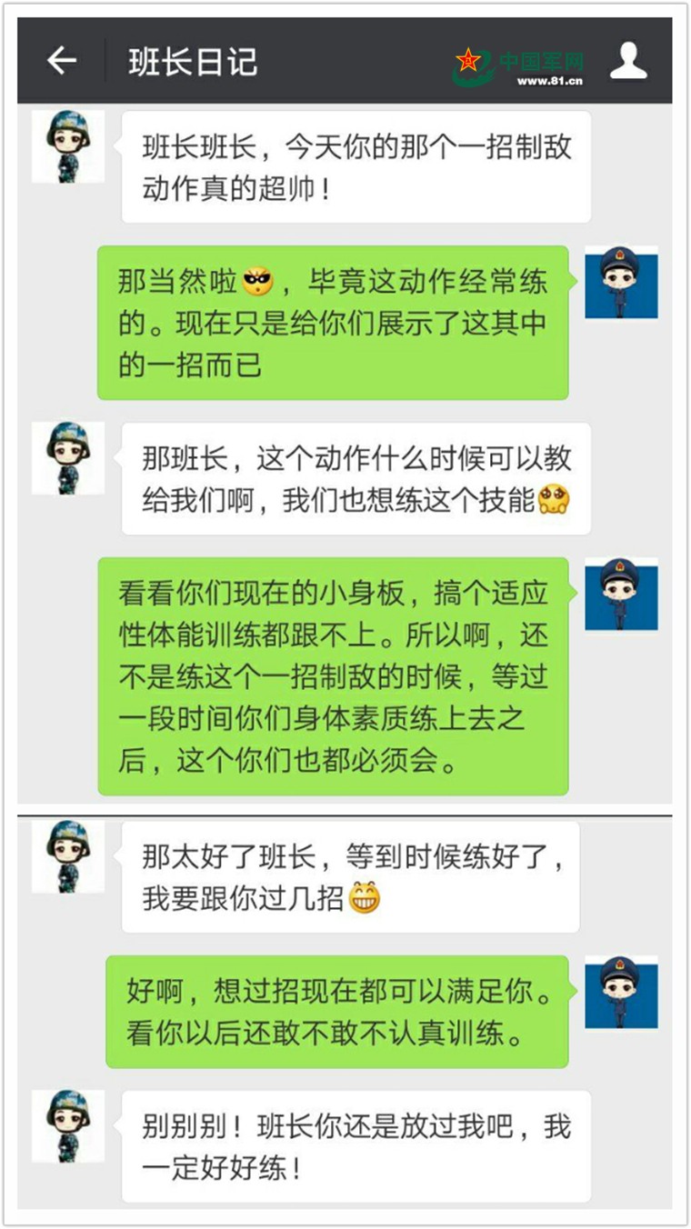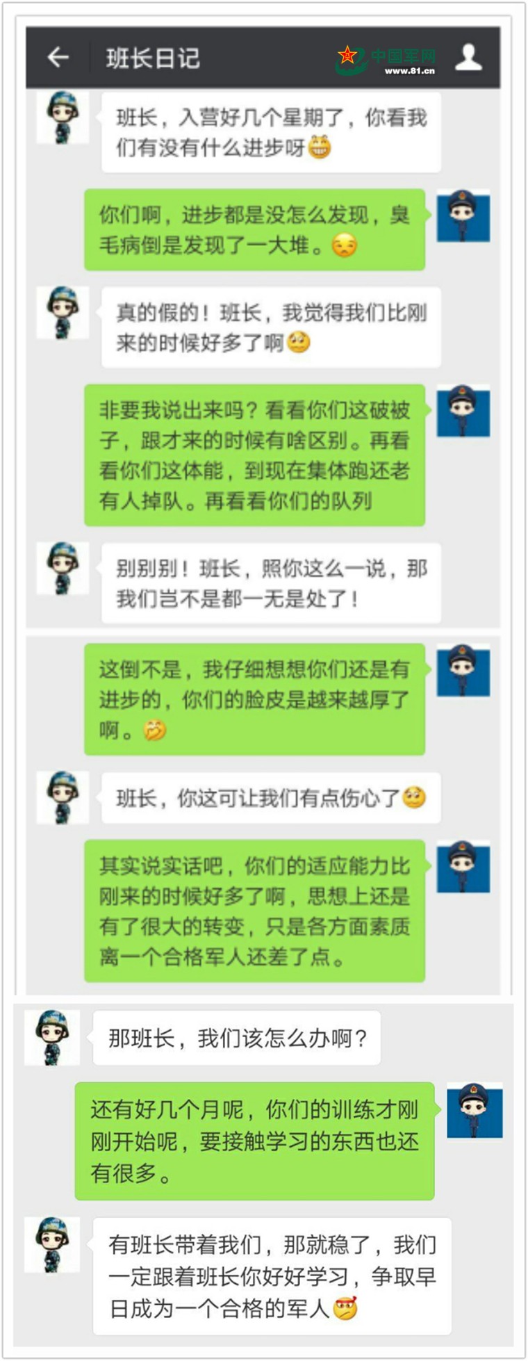 大家好!给大家介绍一下,这是班长与新兵聊天记录