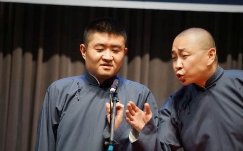 郭德纲对这两个年轻人甚是欣赏,称来不来德云社都能有很好的发展,年轻人开始说相声,表明相声还有活路,只要是说相声的演员都是一家人。