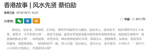 香港卫视:香港故事|风水先贤 蔡伯励--2018-10-15
