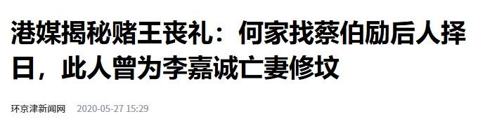 环京津新闻网:港媒揭秘赌王丧礼:何家找蔡伯励后人择日,此人曾为李嘉诚亡妻修坟--2020-05-27