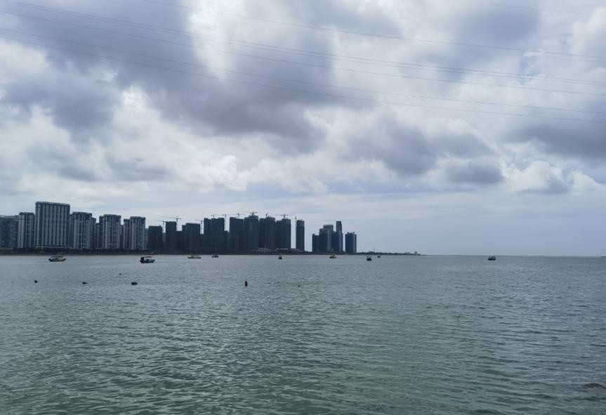 下了车,发现游客很少,应该一方面是因为不是节假日,另外这儿也是一个小众的景点。往沙滩方向走,眼前一片开阔的海域就是汕头从内海通往外海的出海口,能清晰看到对岸的群楼。
