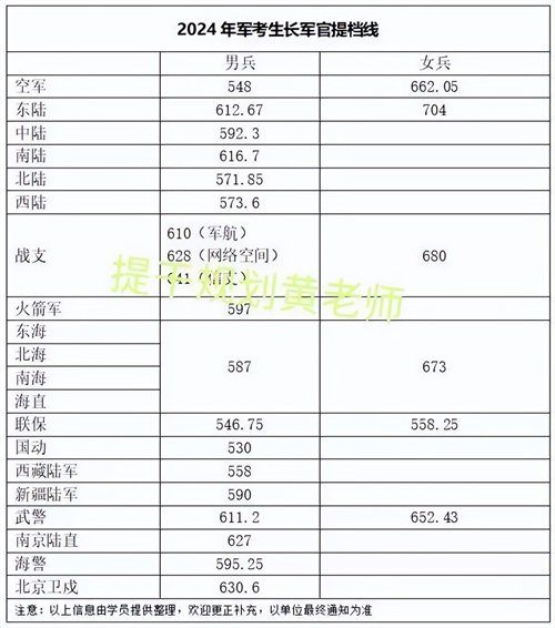 2024年军考各兵种分数线来啦!