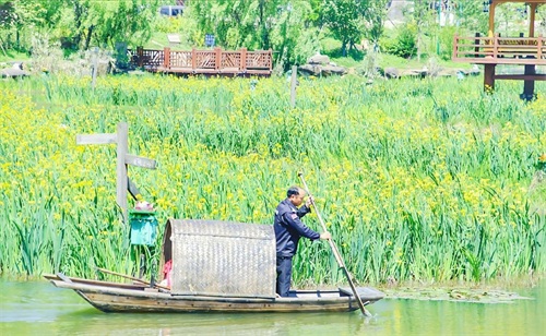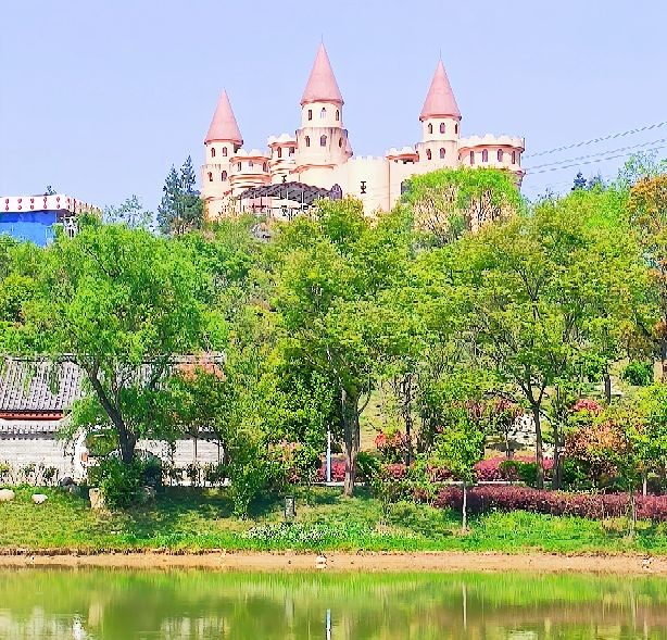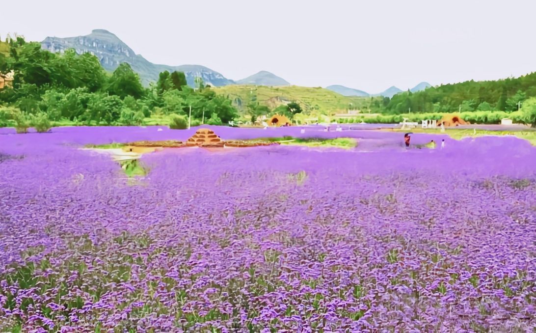 到观景台上,哒啦仙谷的全景便一览无余。景区内有湿地公园、七彩花田、水上乐园、游乐城等景观,主打种植薰衣草、水仙花、波斯菊、马鞭草等花卉,旨在打造一个“心无疆,意斑斓”的多彩世界。