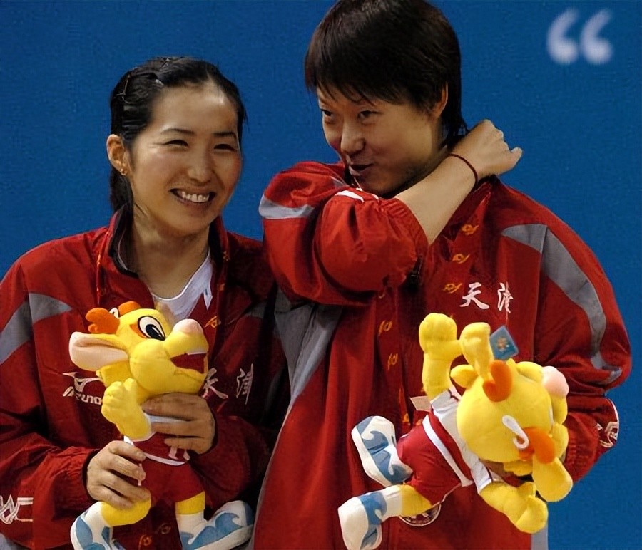 2003年亚锦赛,李楠更是威风八面,一举夺得女团、女双、混双冠军,她还获得女单亚军。