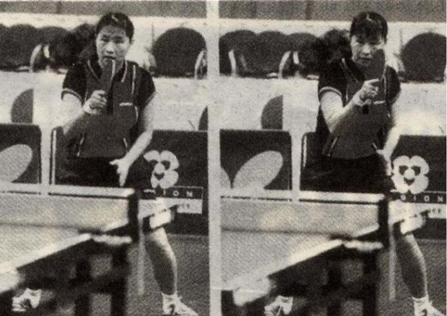 侯英超右手横握球拍,正手反胶,反手生胶,他这种打法在世界上很少见,对外国运动员保持很高的胜率。