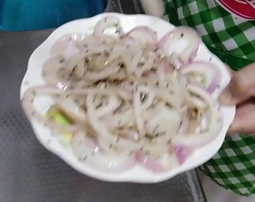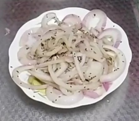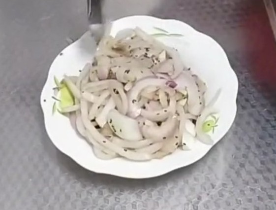 将炒好的洋葱起锅装盘,如果能装成花样最好。