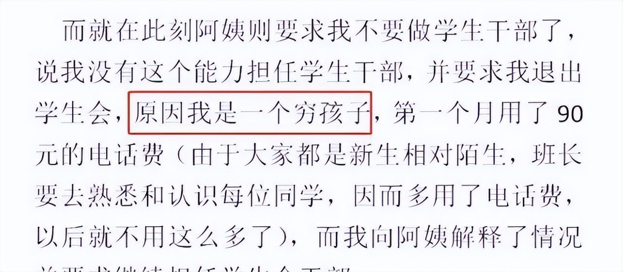 邓姨很快到学校去了解情况,在得知向海清当了班干部加入学生会,开学第一个月联系同学比较多,仅话费这一项就花了90元以后,她觉得向海清的生活支出有些浪费了。