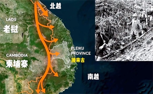 美军进入南越的同时,北越正规军也沿着胡志明小道南下,向南越中部城镇波来古进行渗透。