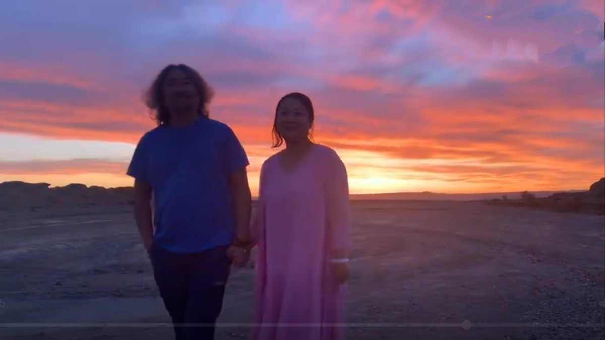 视频中,王茜华穿着粉丝连衣裙,身形有些发福。她与老公沈航手拉手,一起在落日余晖中散步,感情非常的恩爱。虽然两人一句话没说,也没有过多动作,却给人一种岁月静好的力量。