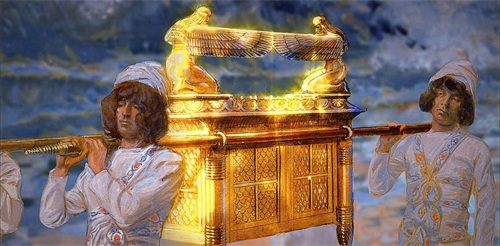 相传,“金约柜”里装着以色列人最崇拜的上帝耶和华的圣谕。这是当年摩西在西奈山顶上得到的。上帝还授予摩西一套法典和教规,要以色列人时时事事都要遵守照办。摩西得到圣谕和“西奈法典”后,就让两个能工巧匠用黄金特制了一个金柜,这就是“金约柜”。