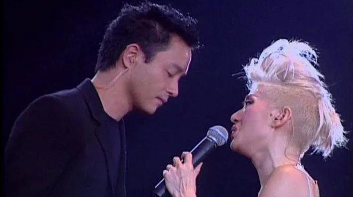 1986年的某个音乐会上,梅艳芳已经是尽显百变的形象,一时之间还让张国荣不知所措。