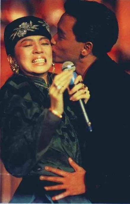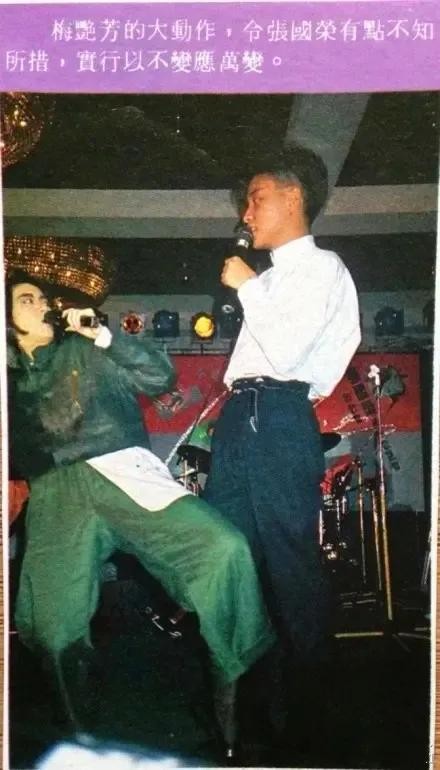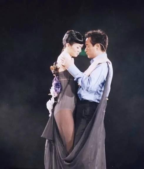 不知道是哪一次的演出活动了,看梅艳芳手臂的贴纸,两人那么深情地。