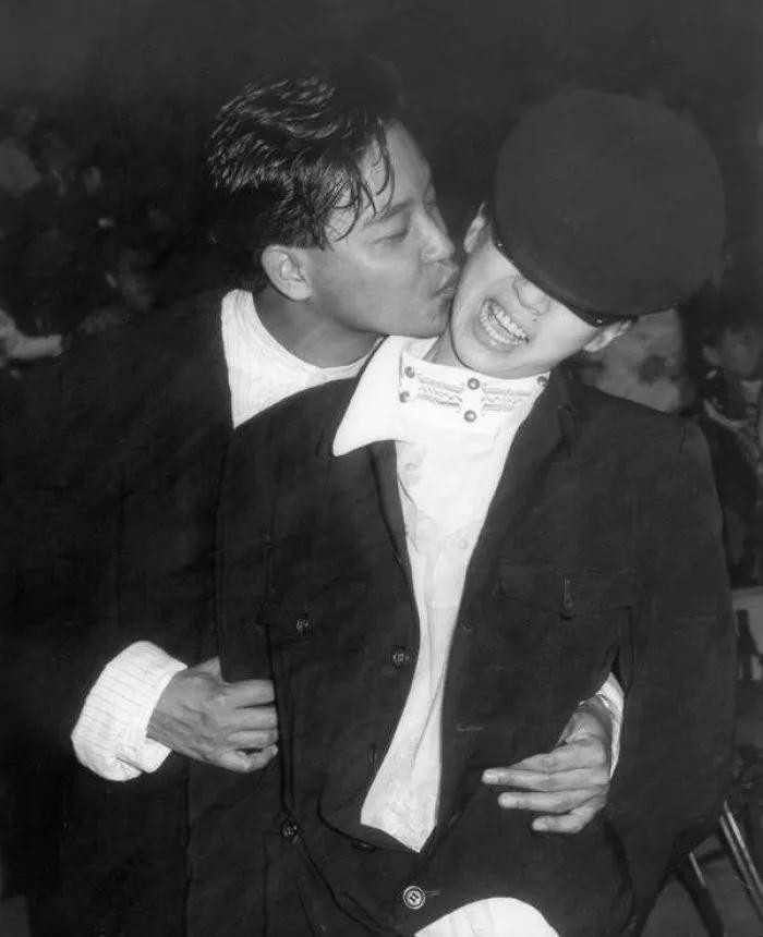 张国荣从背后偷袭亲了梅艳芳,换作别人可能翻脸了。