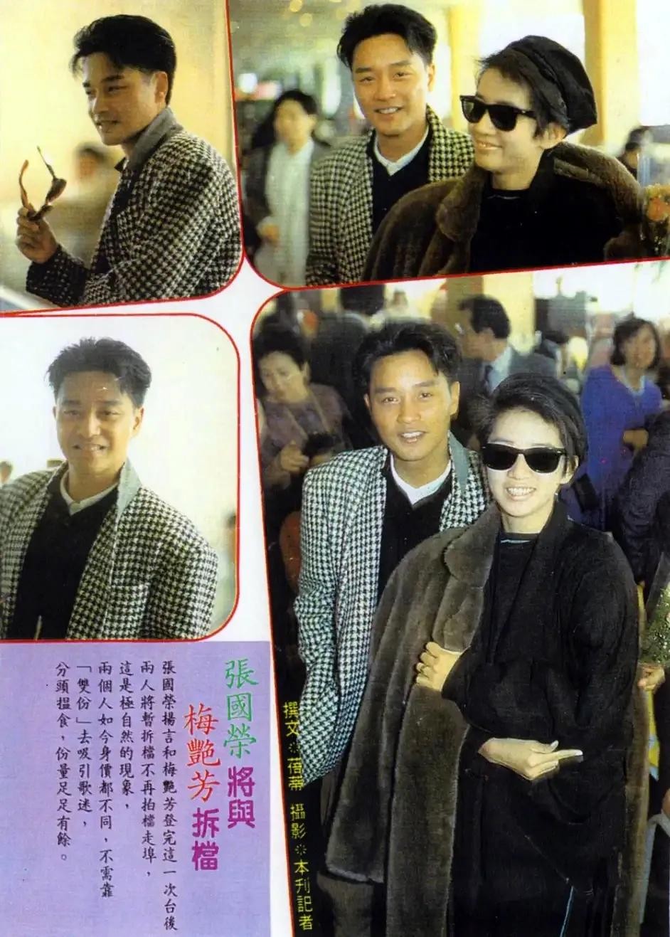 出现在公众场合的两人,梅艳芳那件大衣,张国荣紧随后面护花,此时的两人身价已经足够各自分头发展了。