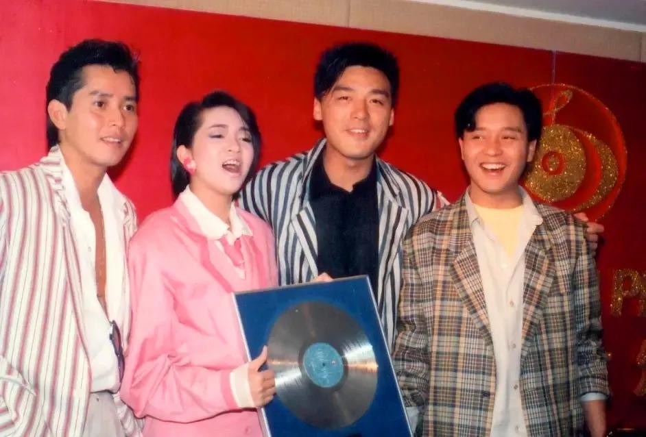 获奖的梅艳芳,旁边除了张国荣,还有校长谭咏麟和钟镇涛。