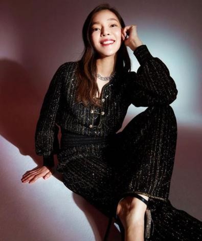 其中一张照片中,曾馨莹身着一身黑色的小香风套装,一头长发披散着,脸上化着精致的妆容,皮肤白皙且肤质细腻,气质完全不输圈内的女星。