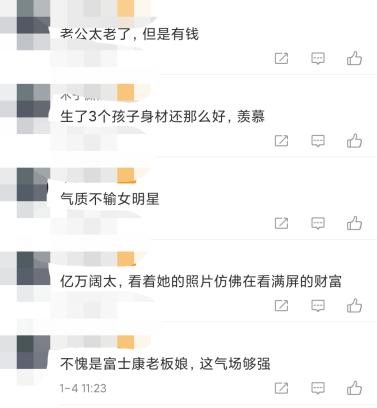 看到曾馨莹的照片,许多粉丝纷纷表示曾馨莹不愧是富士康的老板娘,亿万阔太,气场足够强大,看着她的照片就仿佛是在看满屏的财富,不少粉丝还表示曾馨莹已经生了三个孩子身材还那么好,令人羡慕,此外,还有一些网友调侃曾馨莹的老公郭台铭虽然有钱,但是太老了。