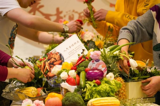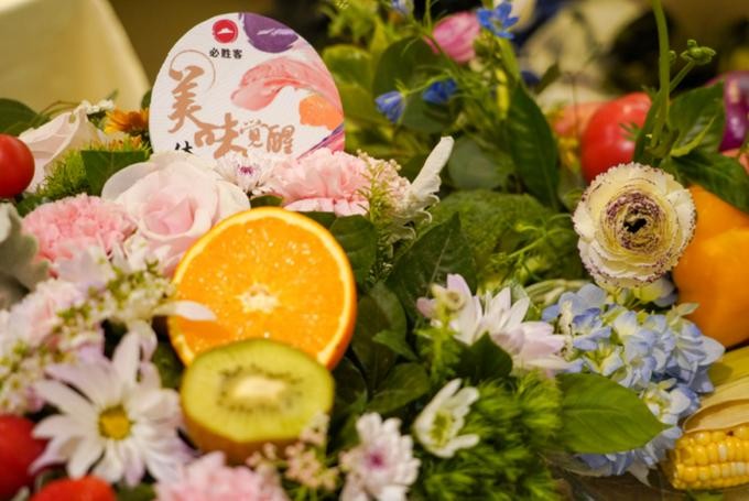 活动当天,除了在商场中庭展示的美味觉醒体验馆之外,在位于商场二层的必胜客餐厅内,一场别开生面的创意蔬果花束课也在如火如荼的进行中,新鲜的猕猴桃,诱人的火龙果,翠绿的生菜、金黄的玉米。。。这些高颜值食材在一群富有新意的年轻人手中变成了艺术品,通过创意组合,奉上一组组貌美的蔬果花束,惊艳现场。据悉,这些食材全部都来自这季新菜单里的元素,而这一向食材致敬的创意蔬果作品,也正式揭开了必胜客2019新菜单的面纱。