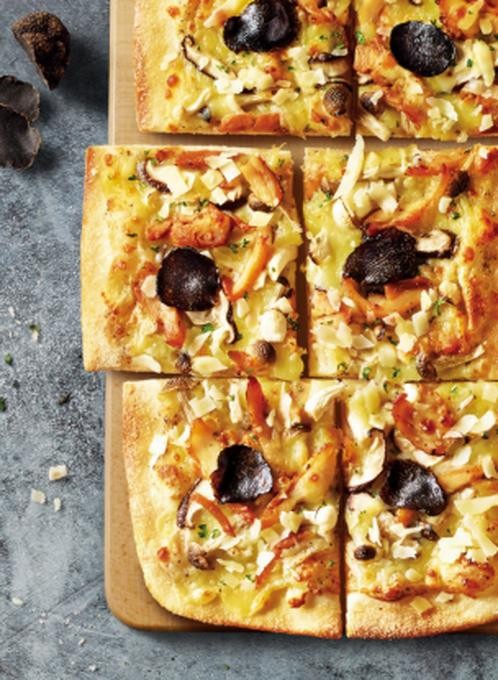 黑松露,因产量稀少,难以采集保存以及独特的美味,被誉为“餐桌上的钻石”。它自然散发的奇特气味极具神秘感,更有千人千味一说。其多维的气味能激发其它食材的美味基因,成就一道道饕餮佳肴,比如必胜客的皇后黑松露鸡腿肉比萨。
